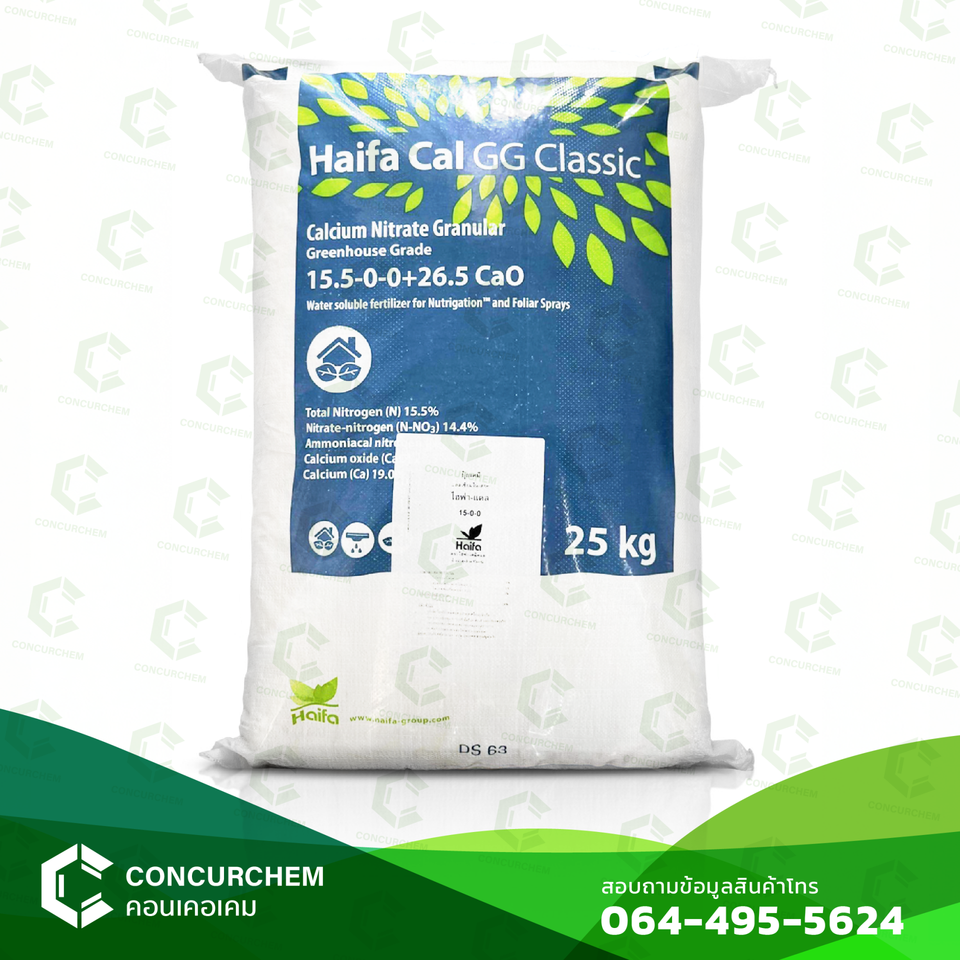 15-0-0 แคลเซียม ไนเตรต (ไฮฟ่า) Haifa Cal GG Classic Haifa Cal GG Classic Ca(NO3)3 N 15% , CaO 26.5%